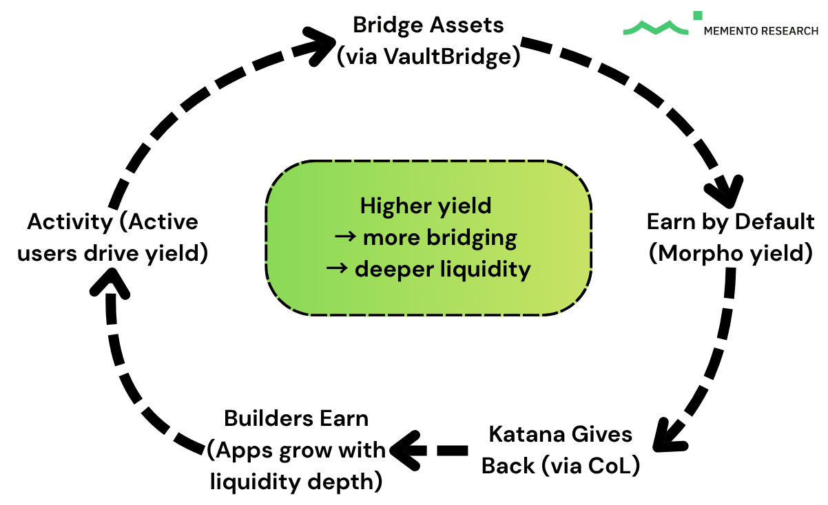 While VaultBridge brings external yield into Katana, CoL ensures the value generated within the ecosystem stays and compounds. It establishes resilient liquidity that stays on Katana through volatile conditions and does not leave when incentives taper off. Net sequencer fees and other protocol revenue don't extract value, they recycle back into the system as long-term, self-sustaining liquidity.