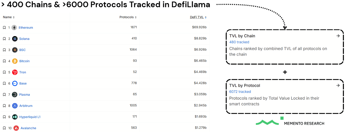 Chains & Protocols Tracked - Source: DeFiLlama