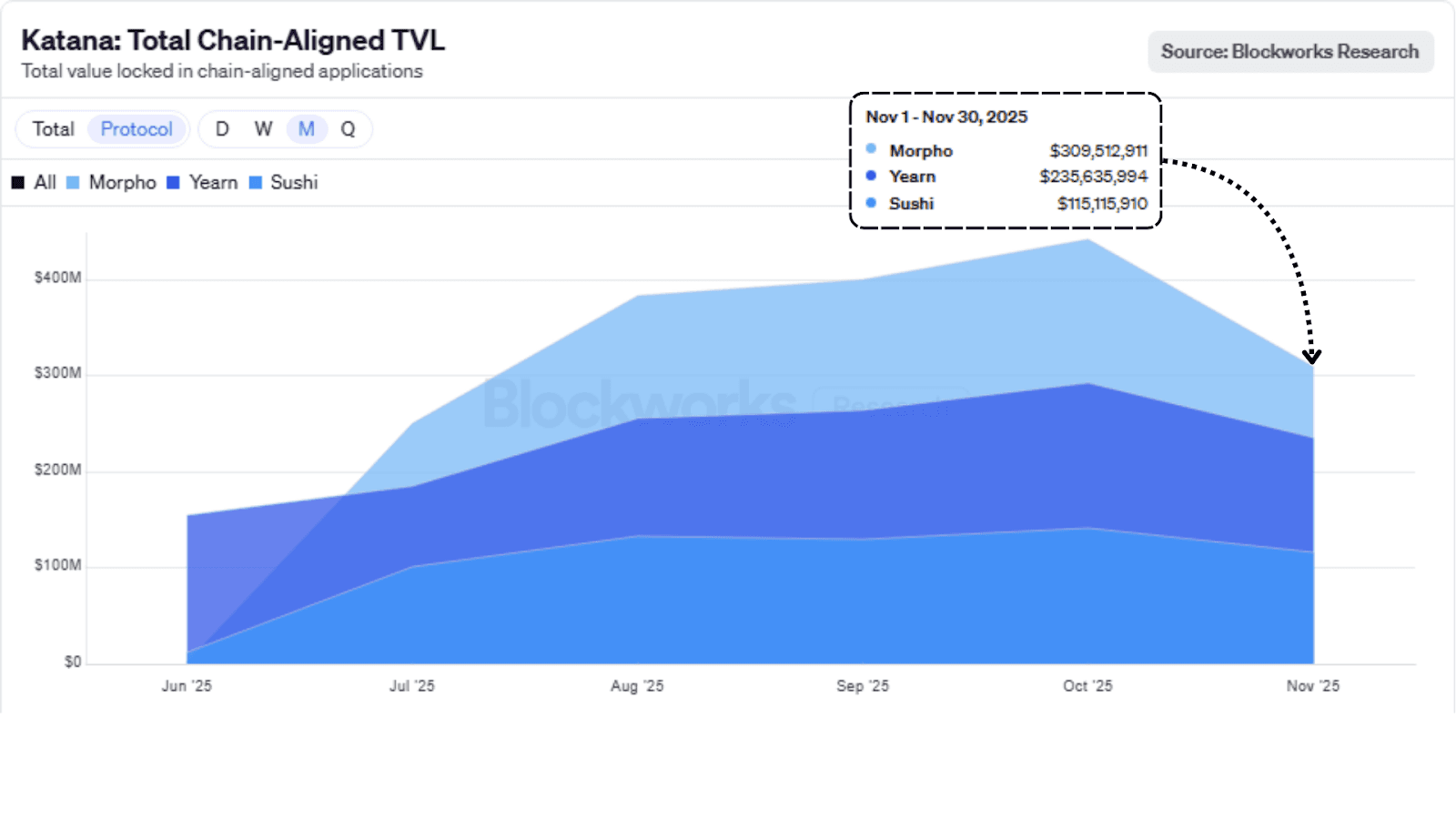 Katana’s Total Chain-Aligned TVL - Source: Blockworks